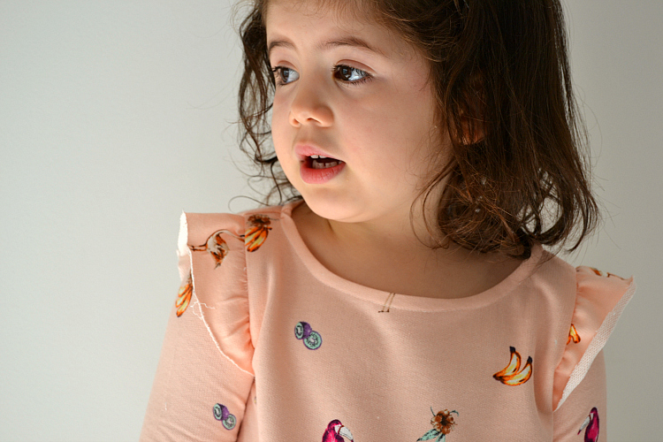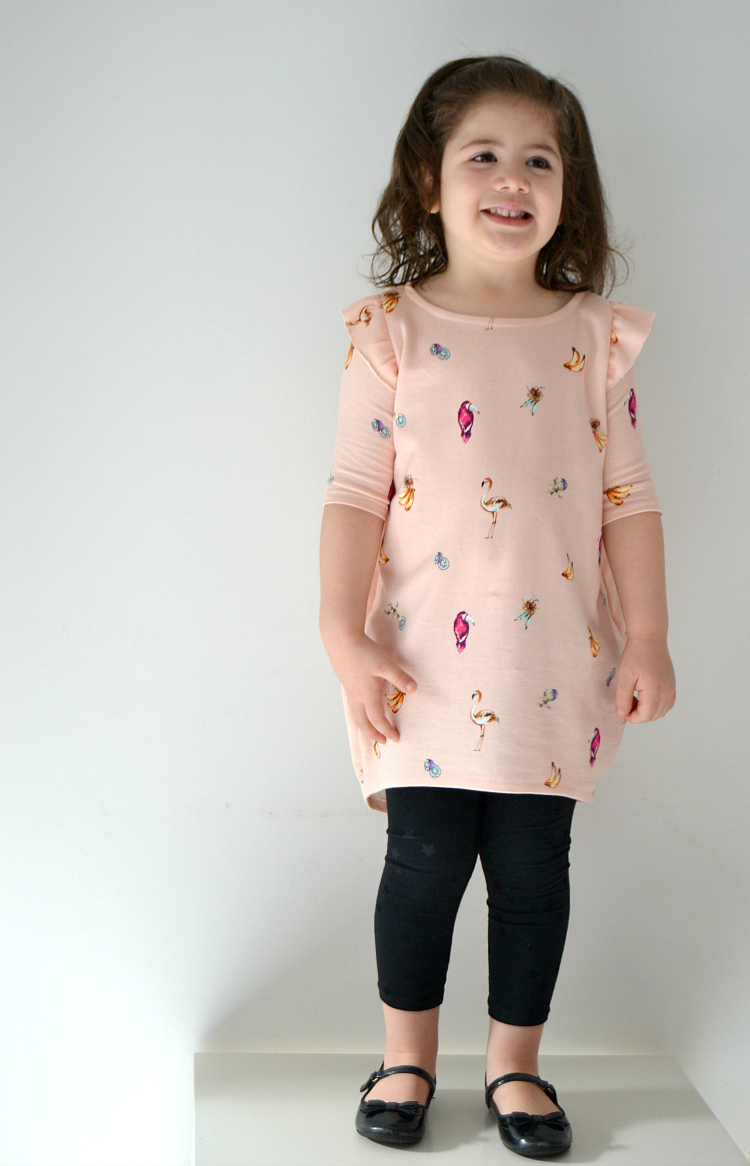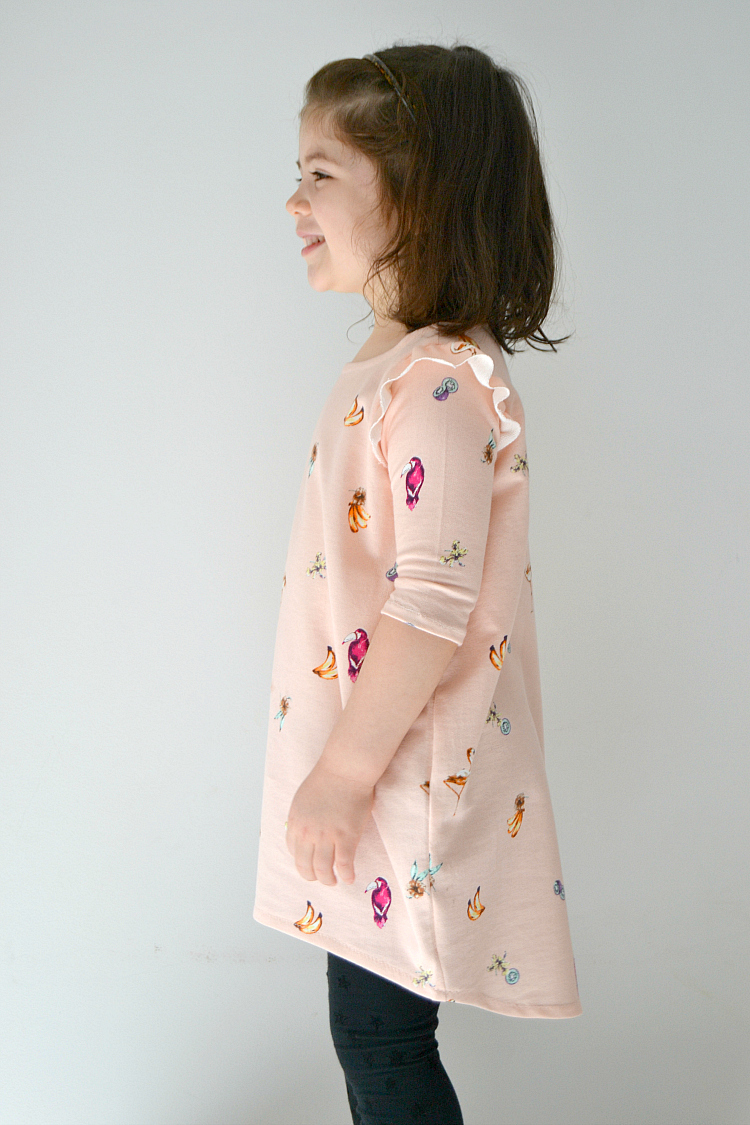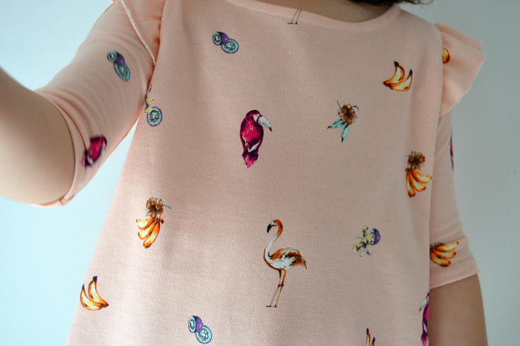 This pattern is only available in this short sleeve version. I thought about making the sleeves longer (which would be an easy hack) but I am on a Spring/Summer sewing mood already. This fabric print is all about Summer, right? And it is so soft and thin, perfect for the warmer weather. Short sleeves it was. :)